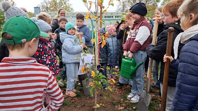 Der Förderverein der Grundschule Hellweg wurde im Rahmen der Baumpflanzchallange vom Förderverein Hattrop nominiert einen Baum zu pflanzen. Der Förderverein hat sich um den Kauf eines Baumes gekümmert und wir haben ihn letzte Woche mit tatkräftiger Unterstützung der Kinder und Frau Kämper gepflanzt. Er wurde von den Kindern auf den Namen Rüdiger getauft.