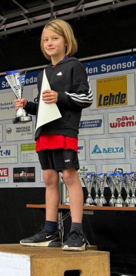 Josefine aus der Klasse 2b freute sich über den ersten Platz beim diesjährigen Stadtlauf.