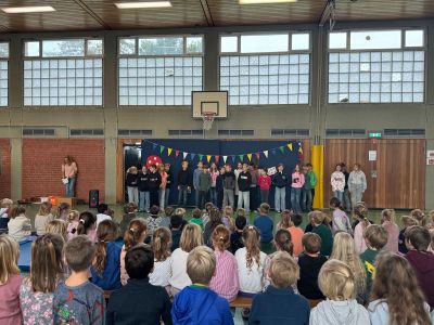 Zur Herbstfeier versammelten sich alle Schülerinnen und Schüler in der Turnhalle und feierten mit einem bunten Programm.