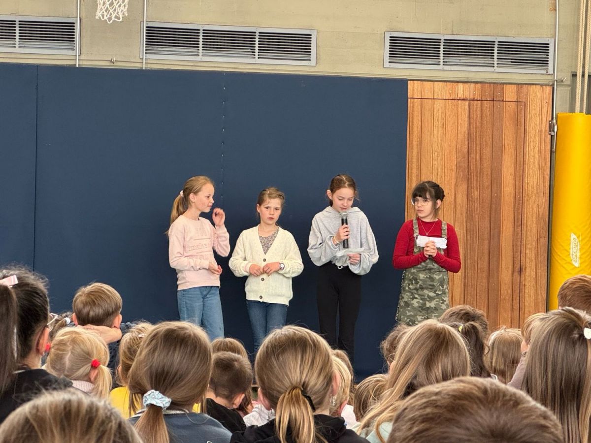Zur Herbstfeier versammelten sich alle Schülerinnen und Schüler in der Turnhalle und feierten mit einem bunten Programm.