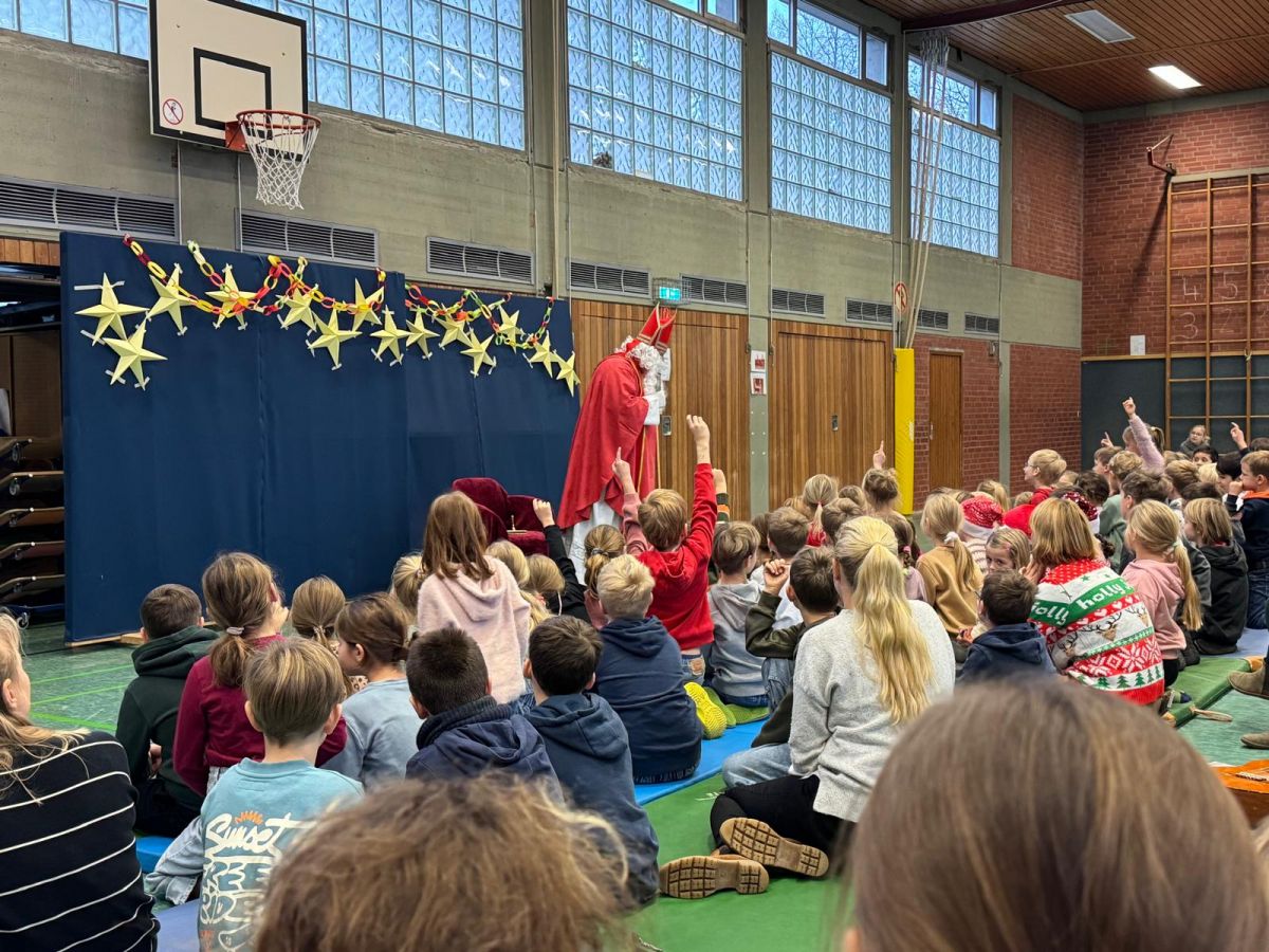 Die Klassen 3a und 2a bereichern die Nikolausfeier mit einem Lied und einem Gedicht.
