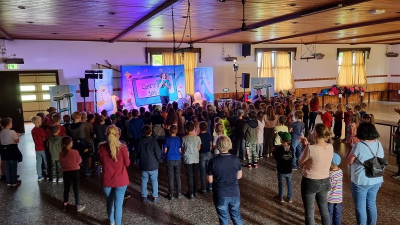 Dort wurden sie mit einem Mitmach-Konzert von Herrn H überrascht, der die Kinder zum Tanzen und Mitsingen aufforderte.