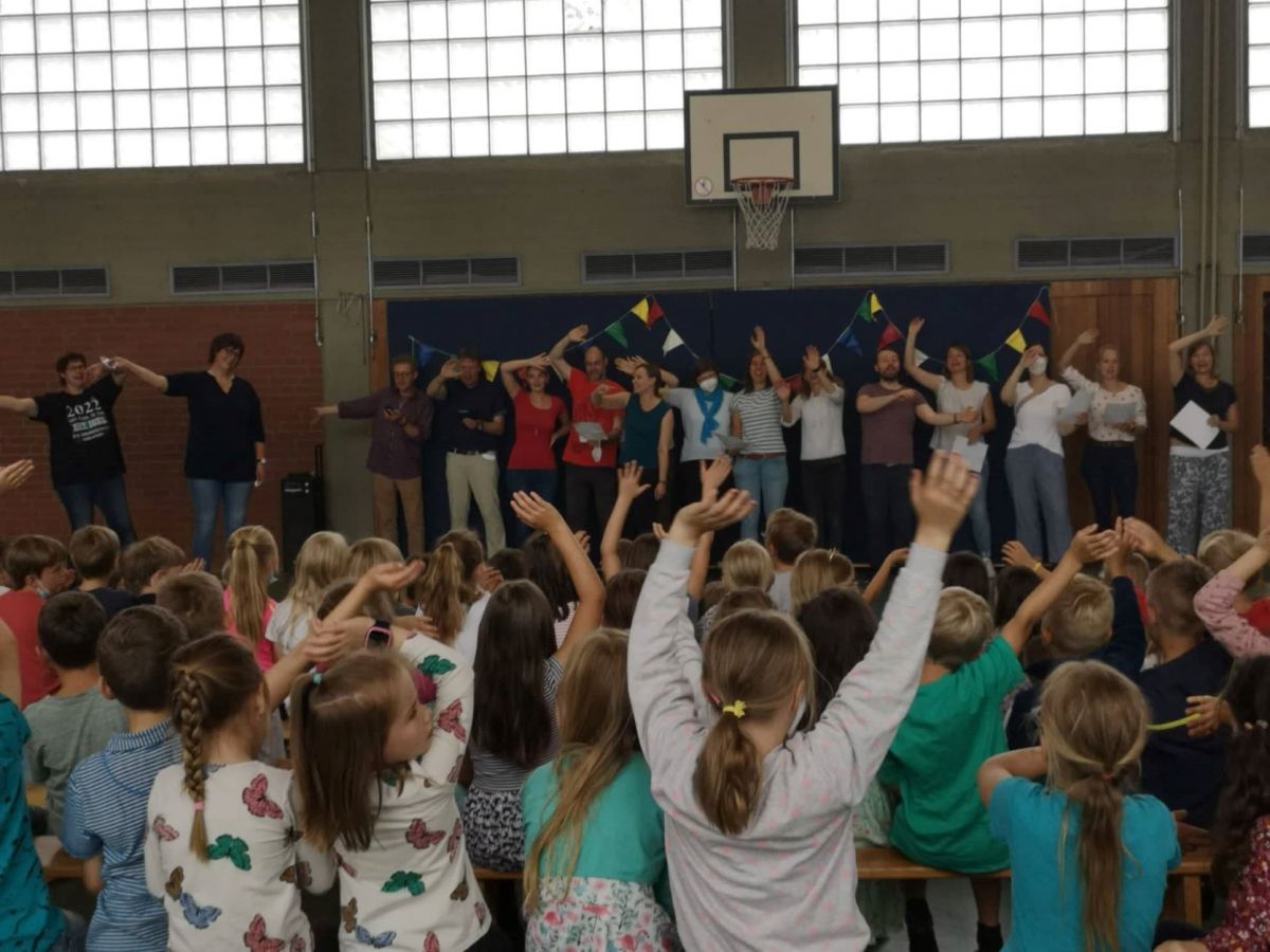 Heute (08.10.2021) konnte auf dem Schulhof bei gutem Wetter unsere Herbstfeier stattfinden.