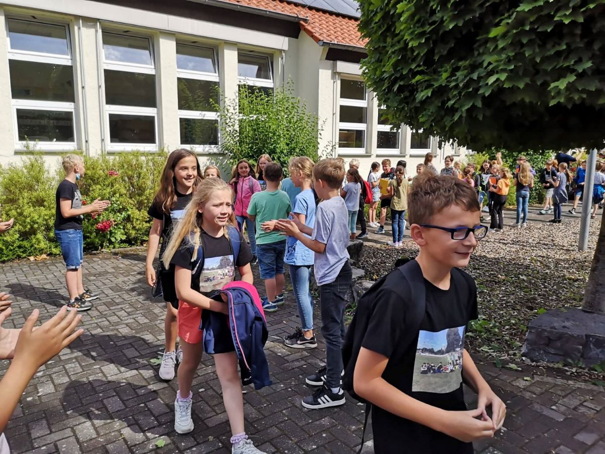 Am Freitag, den 10.06.2022 wanderten fast alle Klassen zur Schützenhalle nach Enkesen.