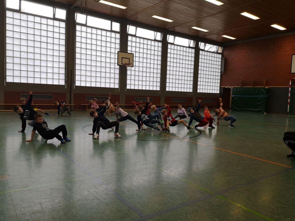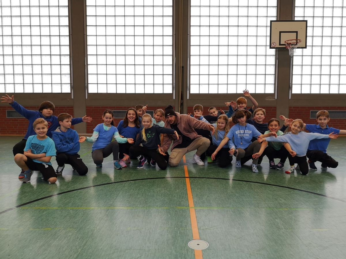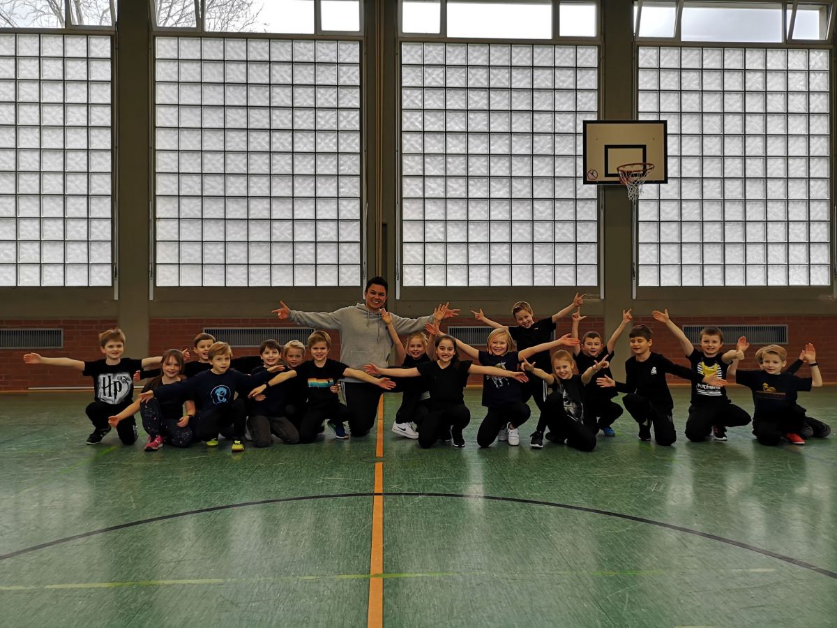 In der Woche vom 01. Februar bis 04. Februar durften die Kinder unserer Grundschule mit fachkundigen Tanztrainern einen Tanz einüben. Alle Kinder waren hochmotiviert und übten jeden Tag fleißig 2 Stundenlang ihre Tanzschritte. Am Freitag gab es dann zwei Aufführungen in der Turnhalle.