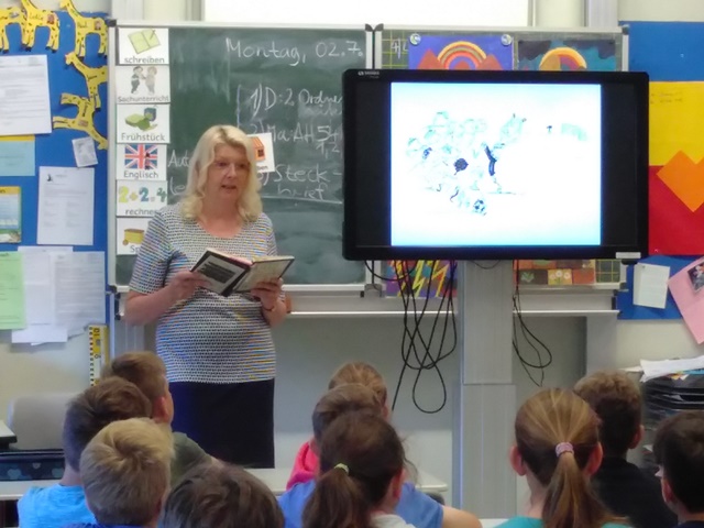Sabine Zett besuchte daher unsere Schule und las den vierten Klassen aus dem Buch "Hugos geniale Welt" vor.
