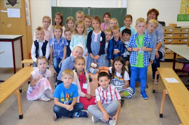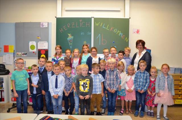 Die Klasse 1b mit ihrer Lehrerin Frau Funke